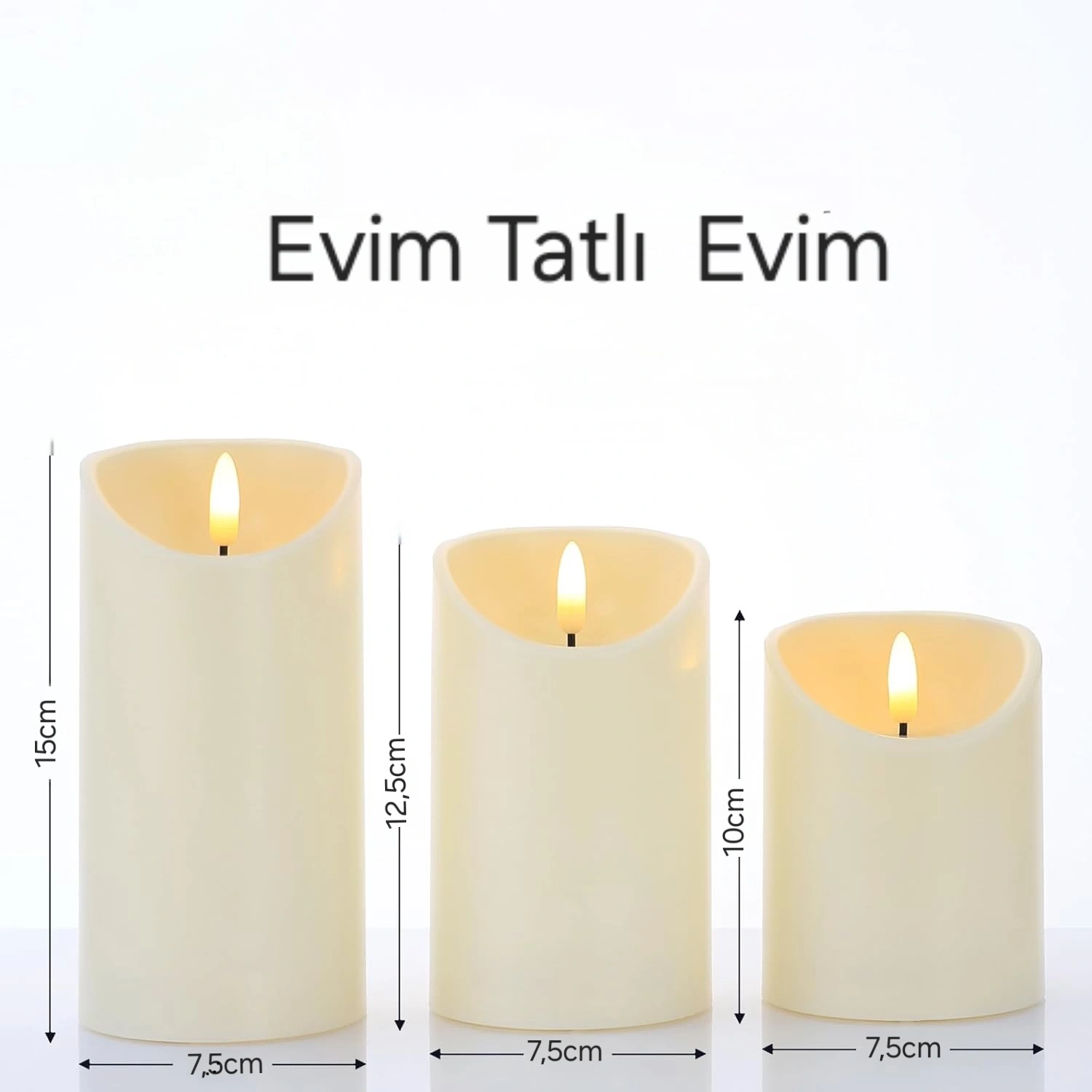 Paket İçeriği: Büyük boy, orta boy ve küçük boy olmak üzere 3 adet led mum tarafınıza gönderilecektir. Piller ürüne dahil değildir.