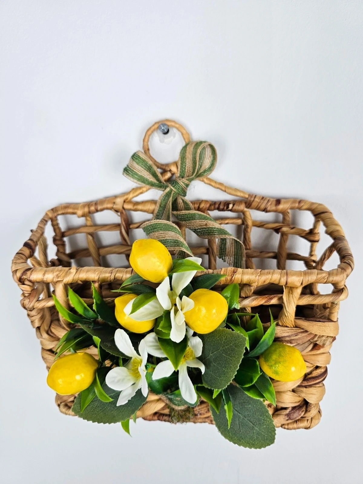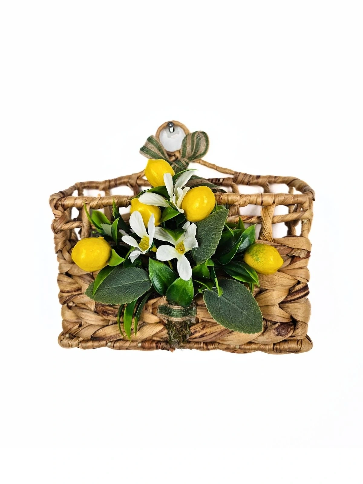 Evinize sıcaklık ve zarafet katacak, el yapımı ve çok amaçlı Hasır Kapı Sepeti! Rustik dokusu ve doğadan ilham alan yapay limon, yapay çiçek ve yaprak düzenlemesiyle dikkat çeken bu özel tasarım, mekanınıza anında akdeniz tazeliği getiriyor.