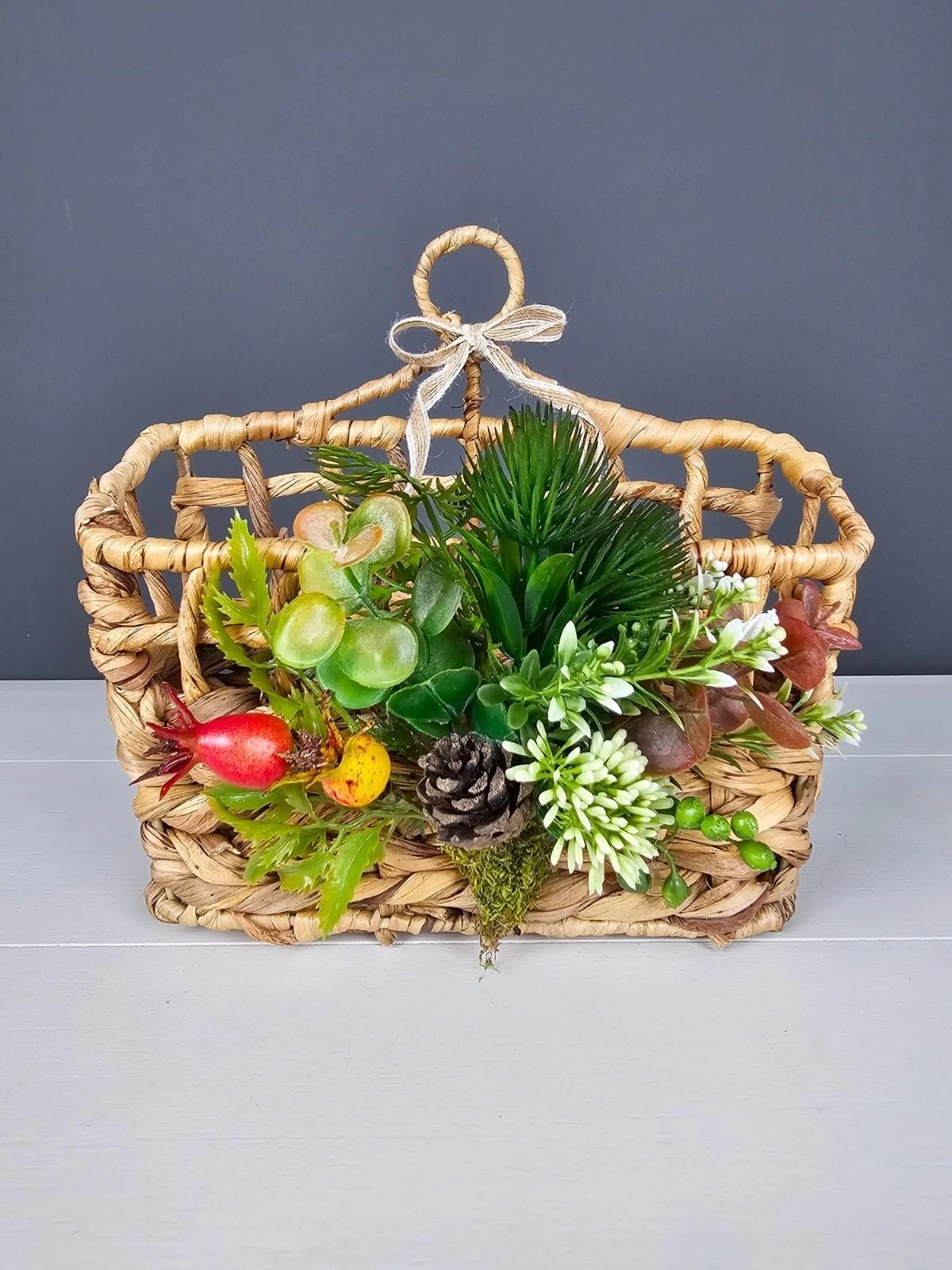 Kış Bahçesi Hasır Kapı Sepeti Posta Kutusu Gazetelik Kapı Süsü 25Cm
