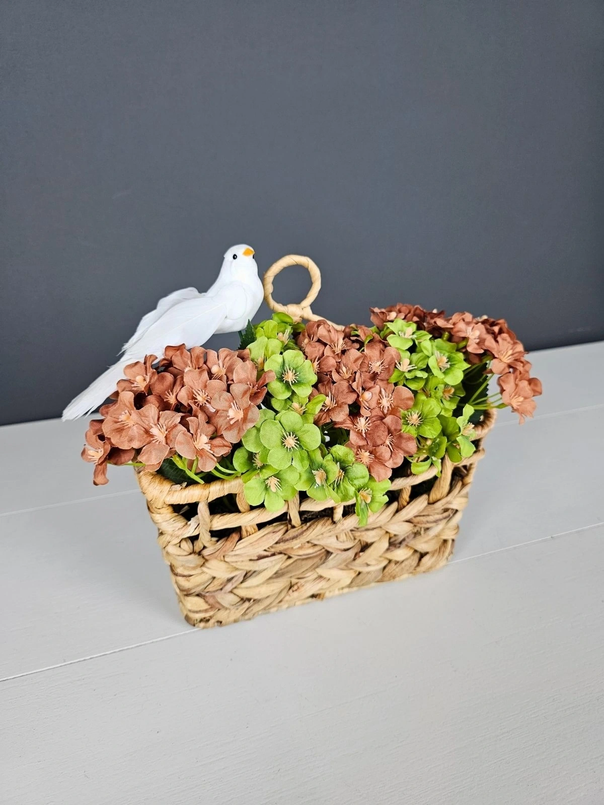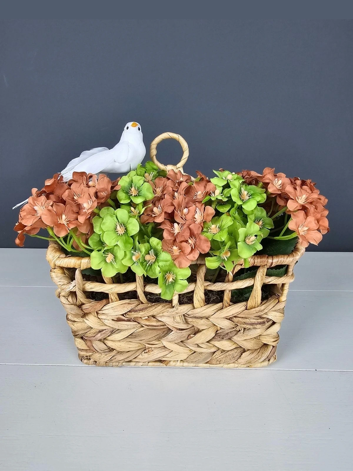Evinize sıcaklık ve zarafet katacak, el yapımı ve çok amaçlı Hasır Kapı Sepeti! Rustik dokusu ve doğadan ilham alan yapay çiçek, yapay yaprak düzenlemesiyle dikkat çeken bu özel tasarım, mekanınıza anında bahar tazeliği getiriyor.