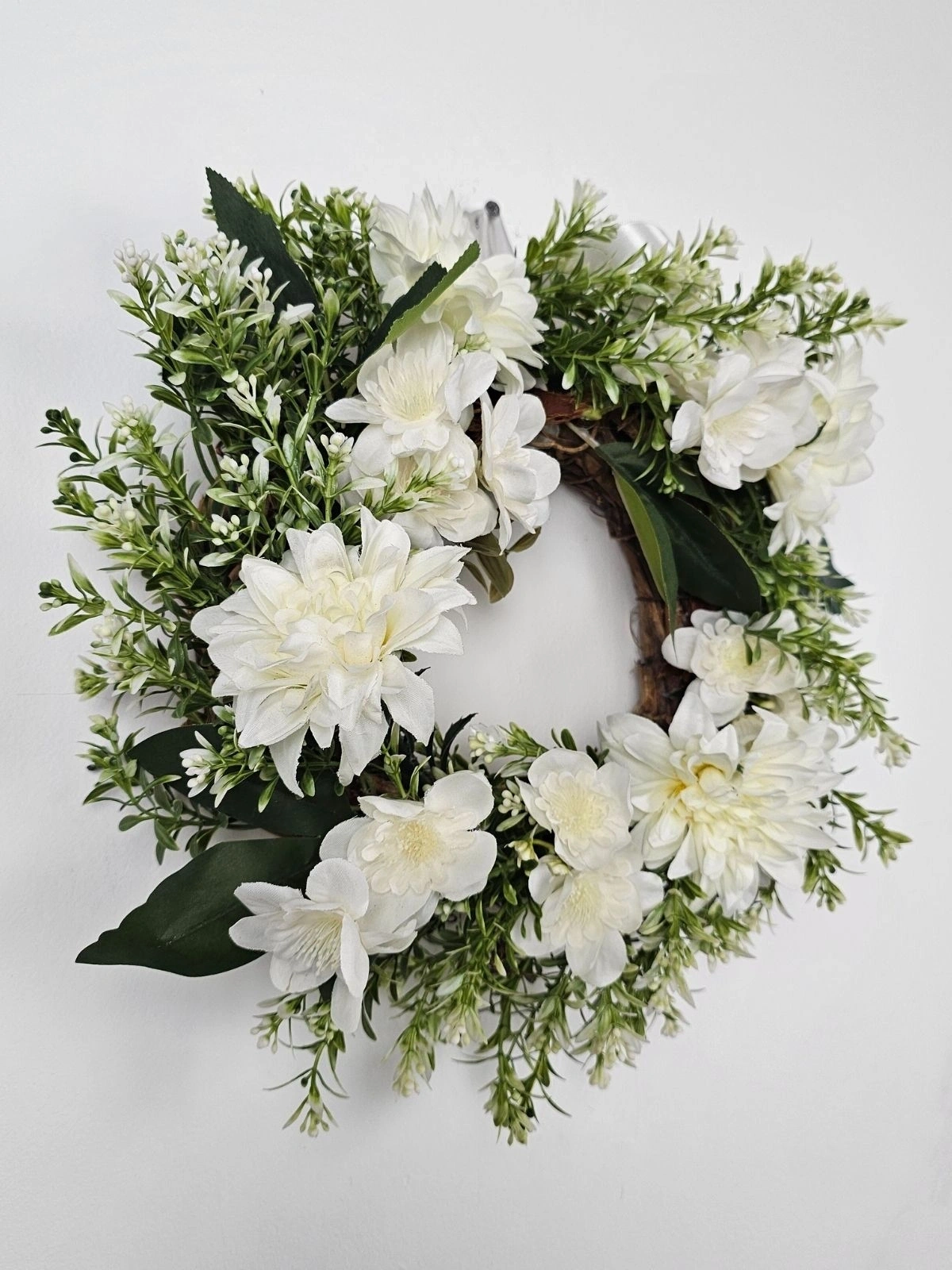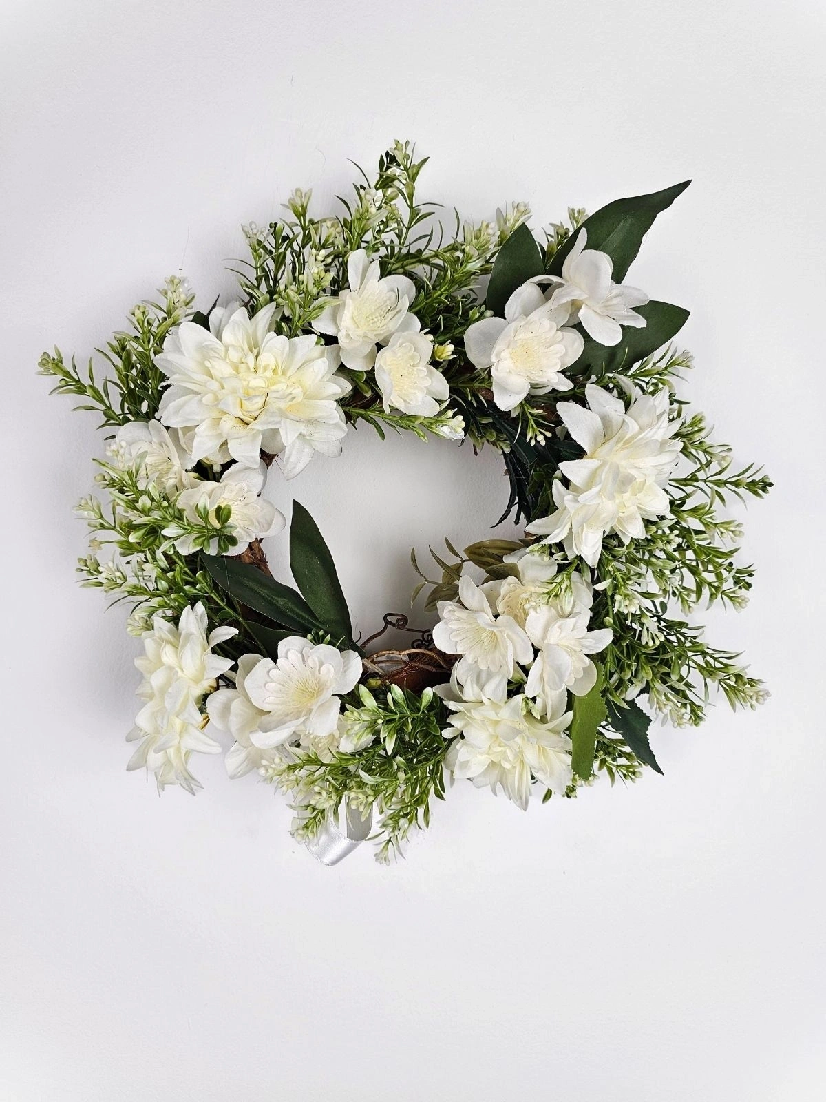 Arka kısmında kullanılan çember gerçek doğal ağaçtan yapılmıştır. Dayanıklı ve sağlam yapısı sayesinde uzun yıllar formunu korur. Üzerinde kullanılan beyaz çiçekler ve yeşil yapraklar yüksek kalite gerçekçi yapay çiçeklerden seçilmiştir. Doğal görünümü sayesinde bahar ve yaz dekorasyonuna mükemmel uyum sağlar.
