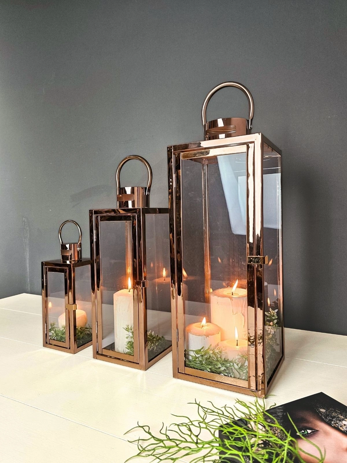 Rosa Trio Paslanmaz Çelik Üçlü Rosegold Mumluk Fener Seti