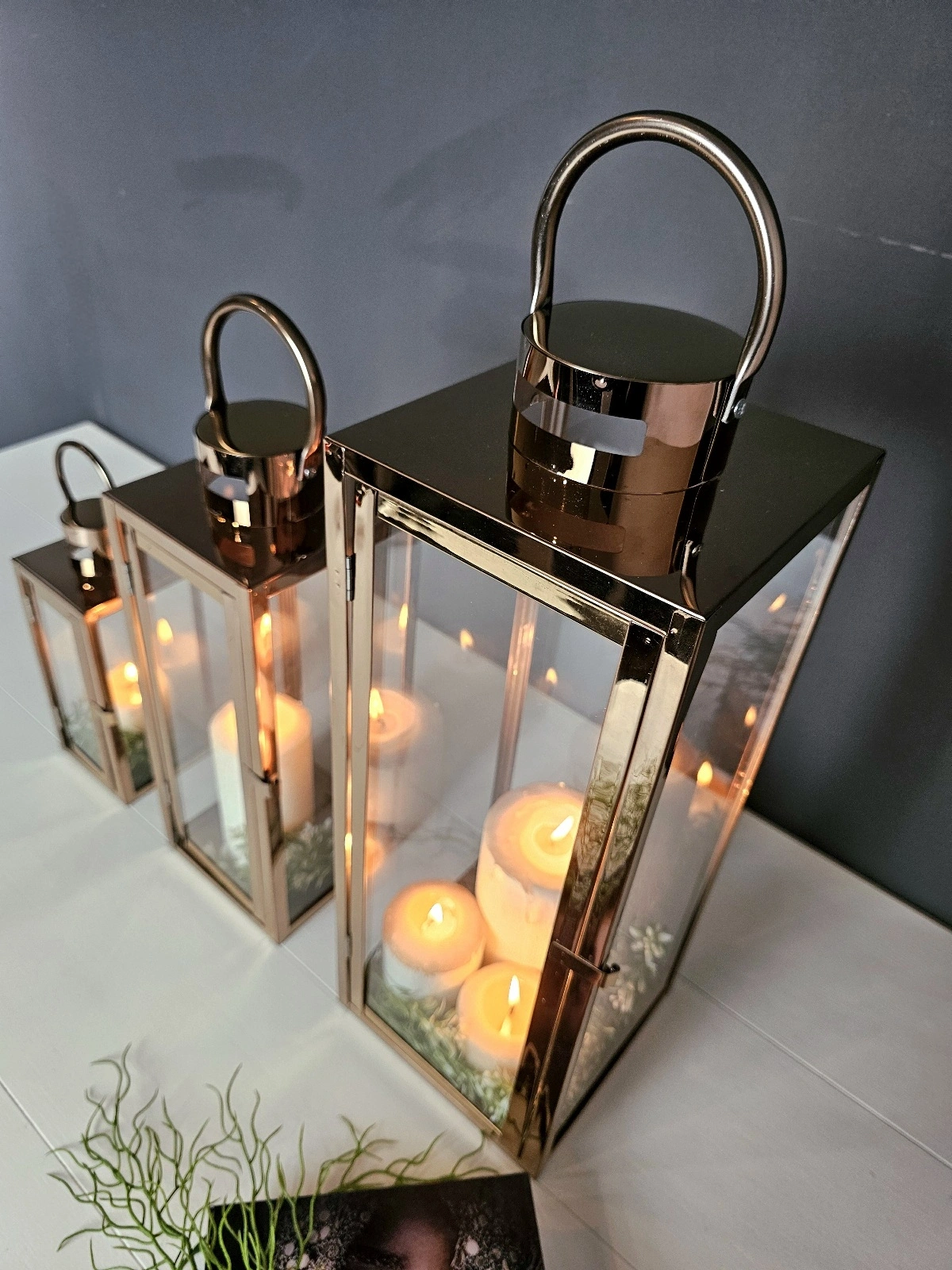 Evinizin atmosferini anında değiştirecek bir dokunuş arıyorsanız, Rosa Trio Paslanmaz Çelik Üçlü Rosegold Mumluk Fener Seti tam size göre! Hem modern hatları hem de zamansız Rosegold rengiyle bu set, dekorasyonun en prestijli parçası olmaya aday.